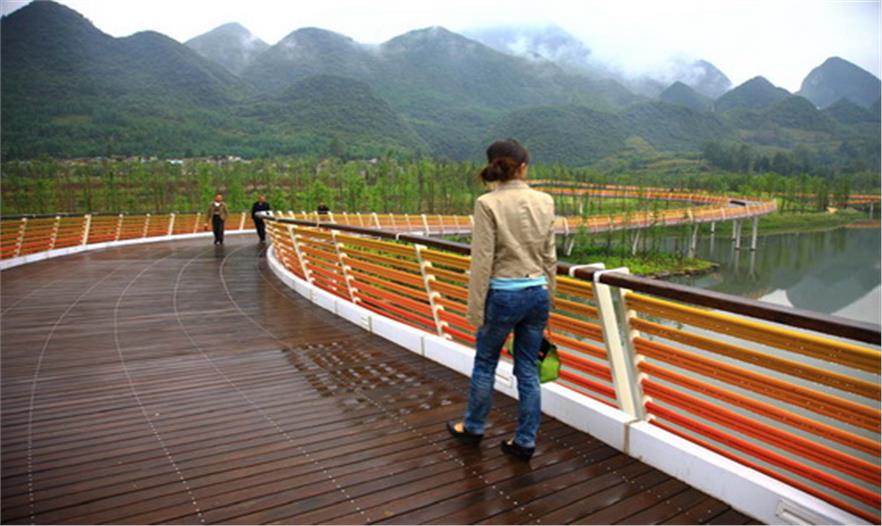 本項目位于貴州六盤水市中心城區(qū)水城河畔,項目將河道生態(tài)改造、城市開放空間的系統(tǒng)整合與城市濱水用地價值的提升有機結(jié)合在一起,充分發(fā)揮了河道景觀做為城市生態(tài)基礎(chǔ)設(shè)施綜合的生態(tài)系統(tǒng)服務(wù)功能。經(jīng)過近3年的設(shè)計和施工建設(shè),項目一期改造工程接近尾聲,昔日被水泥禁錮且污染嚴重的城市“排水溝”,已然恢復(fù)了人們記憶中那碧波蕩漾、流水潺潺的母親河景象。