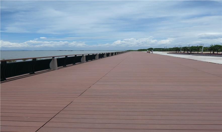 廣州地處亞熱帶氣候,常年受日曬較為強(qiáng)烈,受海洋性氣候影響,空氣潮濕。使用傳統(tǒng)防腐木容易出現(xiàn)開裂、腐爛、變色等嚴(yán)重問題。新森泰塑木不開裂、不腐爛、防蟲蛀,被廣泛應(yīng)用于南沙北海公園觀光步道的鋪設(shè)