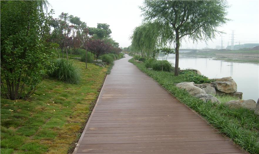 小清河公園主要是以生態(tài)、文化、休閑為主題的文化公園,優(yōu)美的園林摒棄了傳統(tǒng)鋼筋混凝土的元素,取而代之的是原生態(tài)的景觀石和森泰木塑的戶外環(huán)保建材與整個(gè)環(huán)境融為一體,相得益彰。