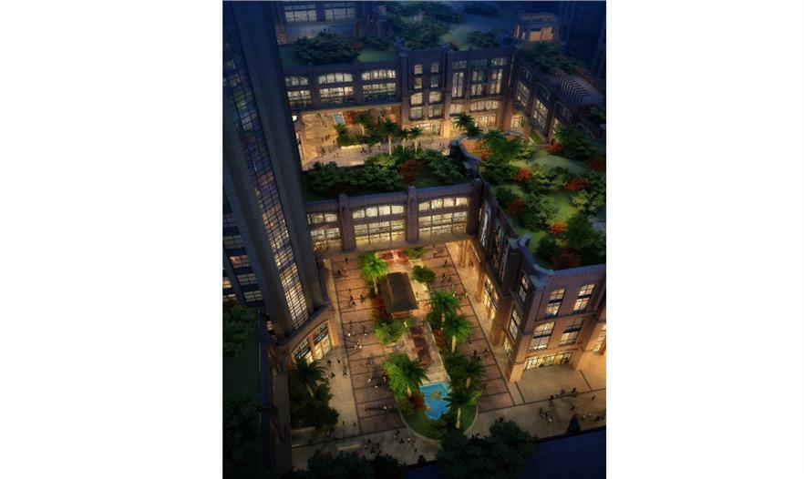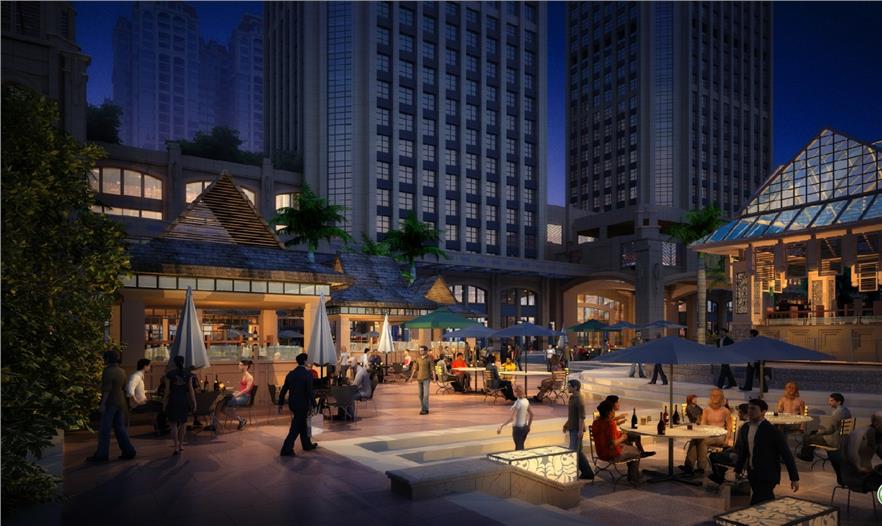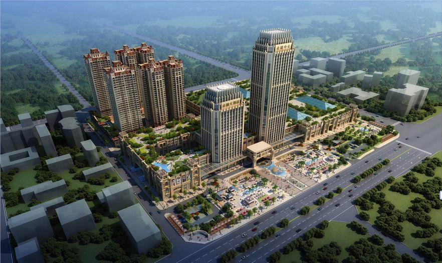 東盟-國際城位于廣西崇左紅線用地面積71008.71m2,紅線外租用地塊面積為54138.83m2,工程規(guī)劃總用地面125147.54m2,凈用地面積94554.18m2,總建筑面積379370.1m2(其中:地上建筑面積329533.58m2,地下建筑面積49836.52m2),建筑占地面47440.55m2,建筑密度50%,容積率3.49,綠地率32.2%,規(guī)劃設(shè)置機(jī)動車停車位25