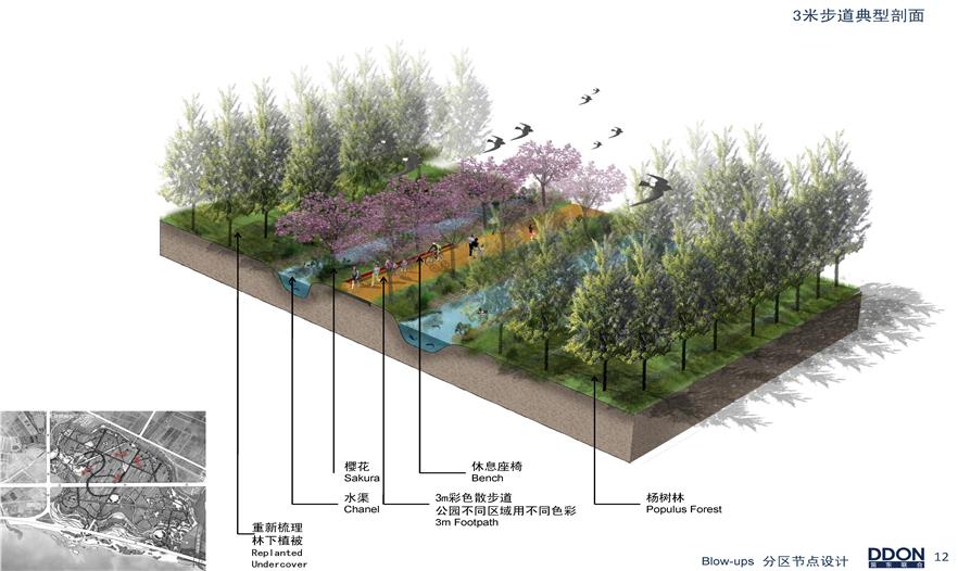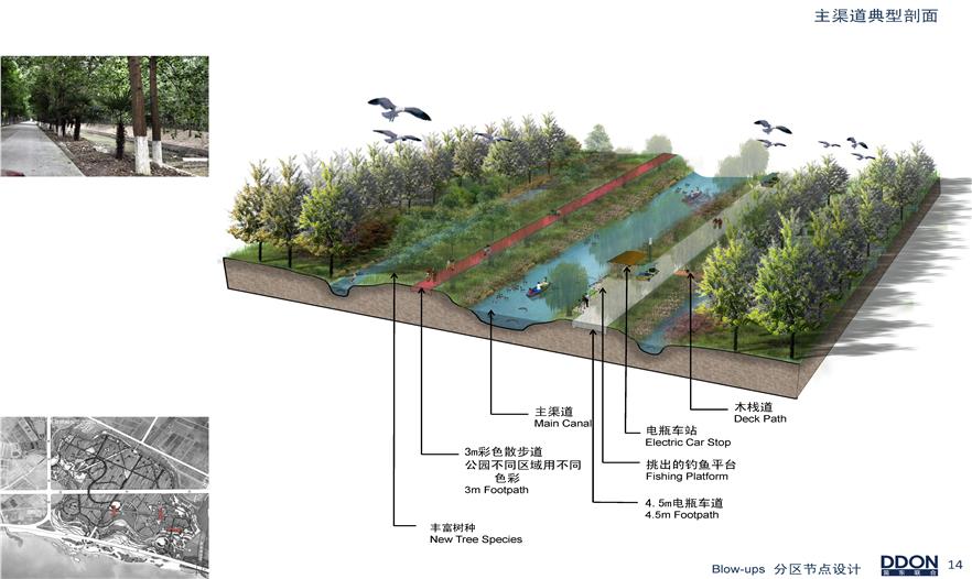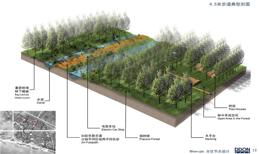 項(xiàng)目定位為復(fù)合型濱湖濕地森林公園,DDON•笛東主創(chuàng)團(tuán)隊(duì)將其定位為以生態(tài)優(yōu)先,集濕地游憩、森林體驗(yàn)、展示教育于一體的“休閑旅游度假目的地”。項(xiàng)目采用保持原生態(tài)植被完整性,不破壞、不拆除,通過科學(xué)手段促進(jìn)生態(tài)循環(huán)的設(shè)計(jì)原則。本案將地塊分為“三園十區(qū)”。“三園”包括濕地互動(dòng)游覽公園、生態(tài)農(nóng)莊觀光體驗(yàn)園、森林互動(dòng)游憩公園。“十區(qū)”包括企業(yè)文化基地區(qū)、濕地互動(dòng)體驗(yàn)區(qū)、濱水商業(yè)區(qū)等。