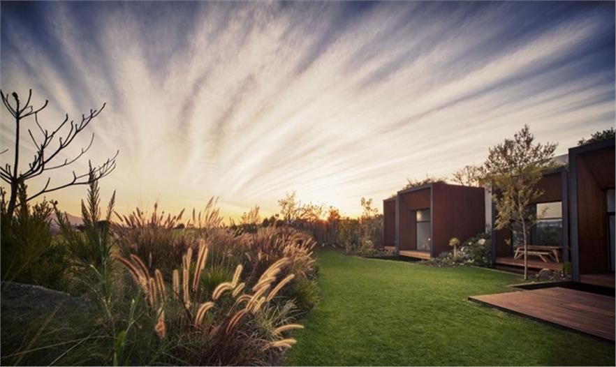 銹跡斑斑的鋼鐵體塊彼此獨立,將“自然”因素引入建筑中,溶入內生植被中,模糊了“建筑”與景觀的界限,盡管后者也是人造的。