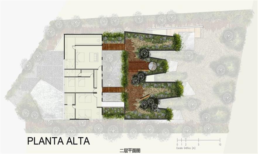 公共空間的屋頂仿佛周圍植被的延續(xù),使用戶們獲得身處無邊無沿的開放空間的感覺。