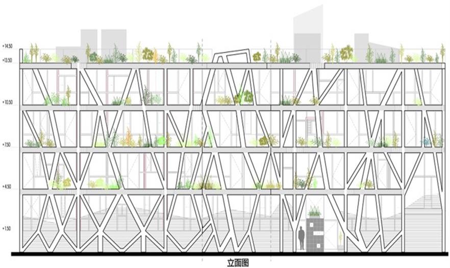 項(xiàng)目共有7間公寓,階梯狀的城市花園生產(chǎn)食物和觀賞植物。