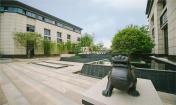 利用中國古典園林藏與露的手法,結(jié)合現(xiàn)代的設(shè)計理念,以中式元素的細節(jié)對主入口進行設(shè)計。主入口水景先以露的形式出現(xiàn),讓從兩側(cè)經(jīng)過的人,一眼就看到這一景觀效果,從而吸引人們進入并駐足觀賞;在水景處理上,以山水為主題。進入入口區(qū)域,看到的是入口臺階,疊水和簡結(jié)中式化的構(gòu)筑物,成為水區(qū)的一個標志。