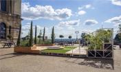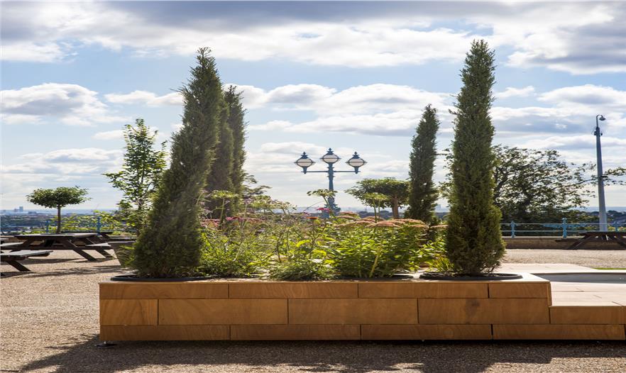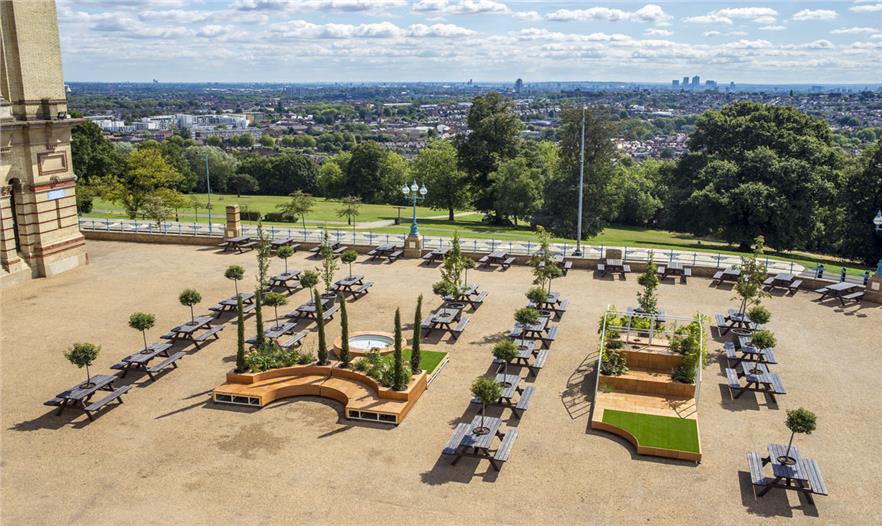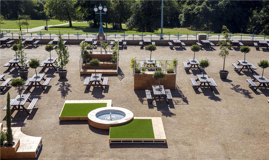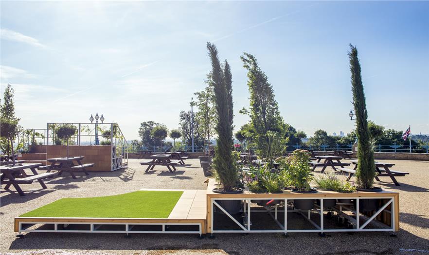 Decorators,一個(gè)致力于倫敦空間的跨學(xué)科執(zhí)業(yè)小組,最近把亞歷山大宮的露臺(tái)上零散分布的小塊集合起來(lái)形成一個(gè)可移動(dòng)的、整體意大利花園。按照設(shè)計(jì)者的描述來(lái)說(shuō),該項(xiàng)目“多洞穴,是一個(gè)公園,也是一處景觀,是一處舞臺(tái),也是一座圓形露天競(jìng)技場(chǎng)”。同時(shí)項(xiàng)目在建設(shè)中也妥善地處理好了與周?chē)h(huán)境相協(xié)調(diào)的關(guān)系,展示了自己的獨(dú)到特點(diǎn)。方案最終“打破了參觀者和宮殿初次相遇時(shí)主要建筑物的大體量,取而代之的是一種更為親切的尺度”。設(shè)計(jì)師為了用梯形的景觀設(shè)計(jì)加強(qiáng)階梯視野的開(kāi)闊性,仔細(xì)考慮了周邊景觀,并以倫敦城市街景來(lái)強(qiáng)調(diào)突出園區(qū)。在很多正規(guī)的花園里,景觀是受到限制的,相對(duì)平面化。該園區(qū)不像其他傳統(tǒng)花園那樣,該園區(qū)采用三維的立體呈現(xiàn)方案,形成大小不同的各個(gè)小型的單元。“這些單元既可以作為種植的容器,同時(shí)也是容納二到十人的休息區(qū)。每一個(gè)小單元種有不同的植物,數(shù)量紋理各異,人們可以感受到不一樣的視覺(jué)體驗(yàn),感受不一樣的氣息。