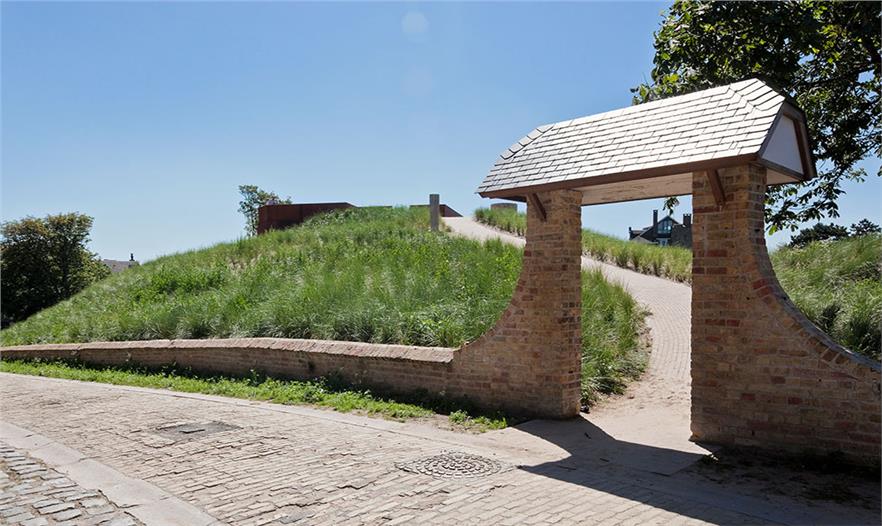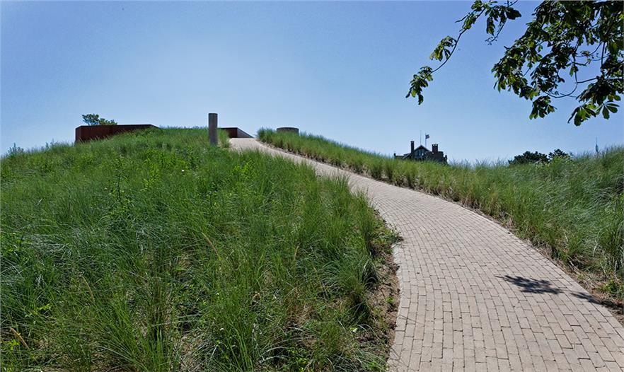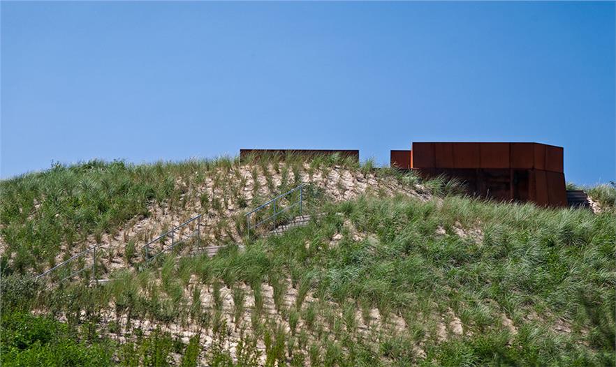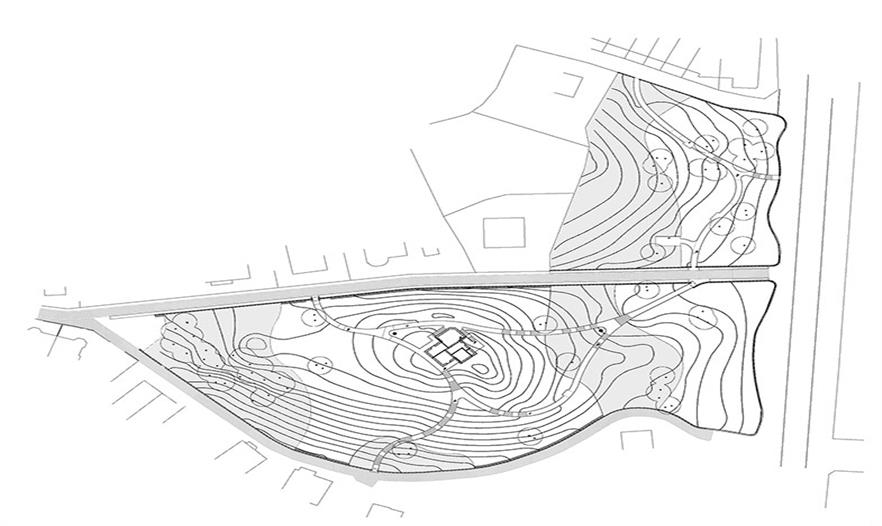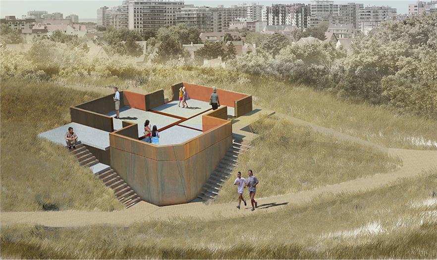 OMGEVING事務(wù)所被選擇去準(zhǔn)備復(fù)興計(jì)劃,以及被委托去改造花園周圍星級別墅的廢墟,建造一個(gè)新形式的花園。雖然知曉了該地區(qū)的歷史和過去的痕跡,但問題是是否恢復(fù)古老的別墅或是接受改變,尋求新的發(fā)展。這個(gè)使人為難的問題給了這個(gè)項(xiàng)目的靈感。不重新建造別墅,而是集中于別墅的殘余,建造一個(gè)新的且具有現(xiàn)代風(fēng)格的存在形式。一些磚塊包裹在一層氧化鐵上,一方面突出了新的存在形式,另一方面加強(qiáng)了古老別墅的存在。