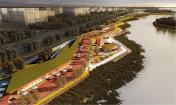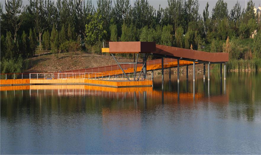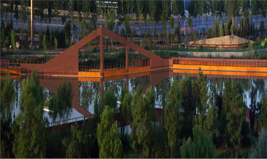 項目方案立意于銀川的發(fā)展和傳統(tǒng)文化的結(jié)合,采用較為抽象的手法來表達(dá)主題設(shè)計理念。由金鳳棲水、塞上奇觀抽象出來的折線造型闡述公園現(xiàn)代游憩體驗的主體空間結(jié)構(gòu)。創(chuàng)造先進(jìn)的設(shè)計體驗及優(yōu)越的城市形象,營造一條視覺享受和生態(tài)休閑的記憶性景觀地標(biāo),把艾依河濱水景觀公園打造成中國西北地區(qū)最具影響力城市軸線,形成銀川面向世界的形象窗口與大氣連貫、視覺沖擊力強的城市景觀新形象。