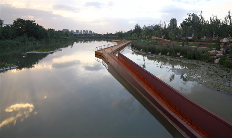 銀川艾依河濱水景觀公園基地位于銀川市金鳳區(qū)東北部,緊鄰城市新區(qū),位于交通黃金焦點上。濱水優(yōu)美休閑空間是每個城市的夢想,艾依河正是實現(xiàn)這種夢想的地方。但項目面臨的現(xiàn)狀卻是粗糙的城市濱水區(qū)域,不僅水和城市割裂,未能實際解決城市的環(huán)境問題;而且濱水景觀只作裝飾存在,沒有建立多元的體驗體系,毫無無人氣;定位不全面,只考慮簡單的城市配套性質(zhì),對城市影響力的提升無能為力。