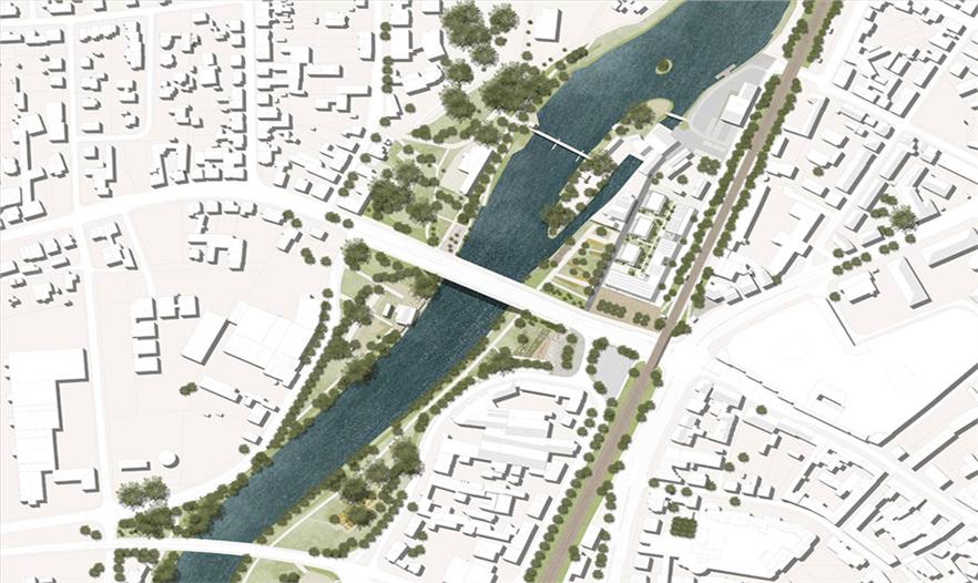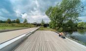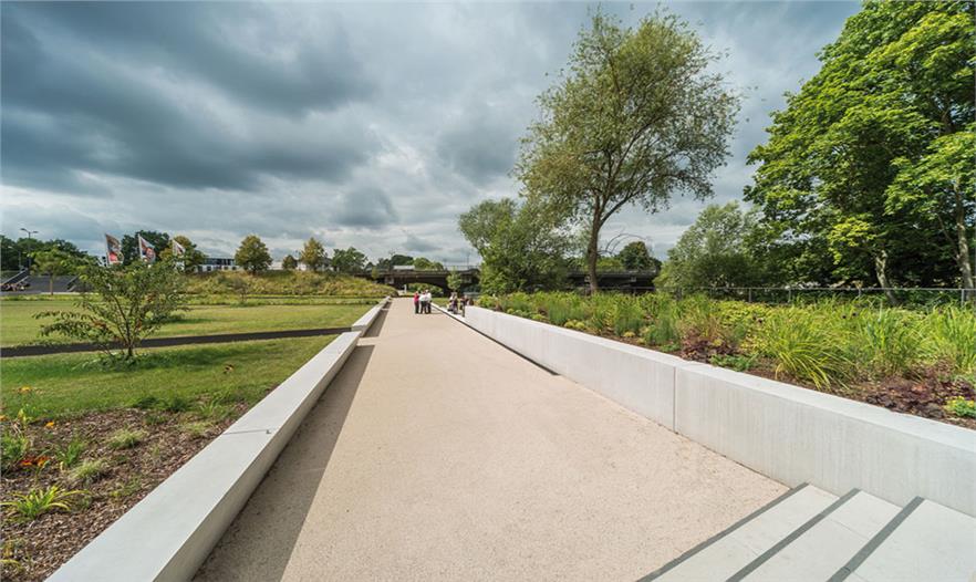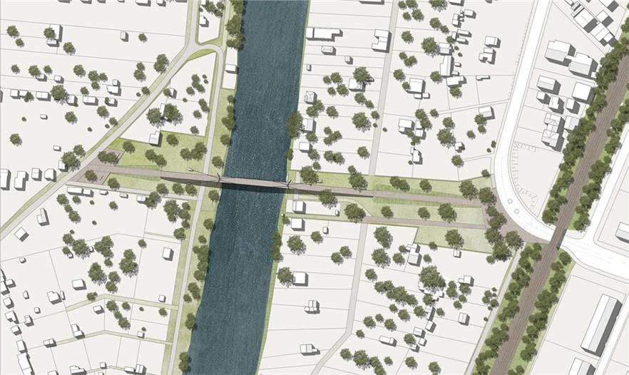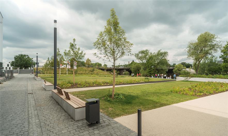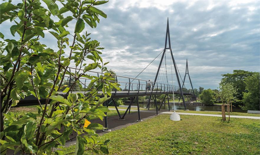 Gießen市完成了這個(gè)框架規(guī)劃方案的前兩個(gè)項(xiàng)目。第一個(gè)項(xiàng)目是一個(gè)城市入口,位于框架規(guī)劃方案的中央城市區(qū)域。入口“By the Mills”包括一個(gè)代表性的廣場(chǎng)、一條林蔭道、一個(gè)精致的米爾花園以及各種各樣的水景。在廣場(chǎng)的對(duì)面是大型的草坪運(yùn)動(dòng)場(chǎng),是由以前的停車場(chǎng)改造的。這個(gè)運(yùn)動(dòng)場(chǎng)讓各個(gè)年齡段的孩子們?cè)?個(gè)不同的游樂區(qū)里游玩。這些也提到了河流主題,仿制了草地景觀的典型元素。第二個(gè)完成的項(xiàng)目是一個(gè)新的人行和自行車橋,位于城市的北面。它現(xiàn)在是Gießen市 3個(gè)橫河橋中的一個(gè),極大地提高了城市的基礎(chǔ)設(shè)施建設(shè)。橋周邊的這個(gè)新的公共空間使人們能夠進(jìn)入到Lahn的北面。這些是框架規(guī)劃方案中所設(shè)想的草地公園的第一批元素。隨著框架規(guī)劃方案中其他目標(biāo)的實(shí)現(xiàn),會(huì)使Gießen市獲得新的城市空間發(fā)展方向,在它的引導(dǎo)下將建造出一個(gè)新的內(nèi)城娛樂休閑區(qū)域。