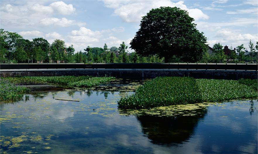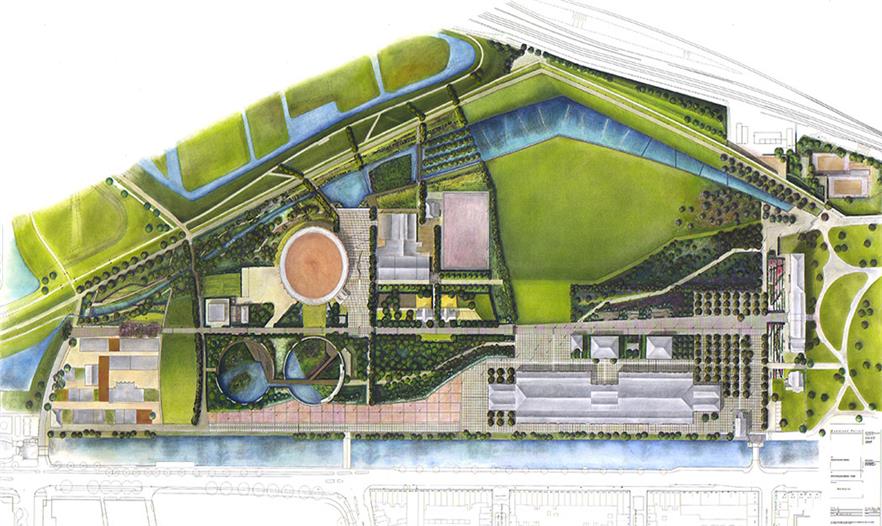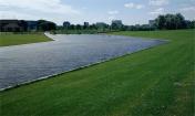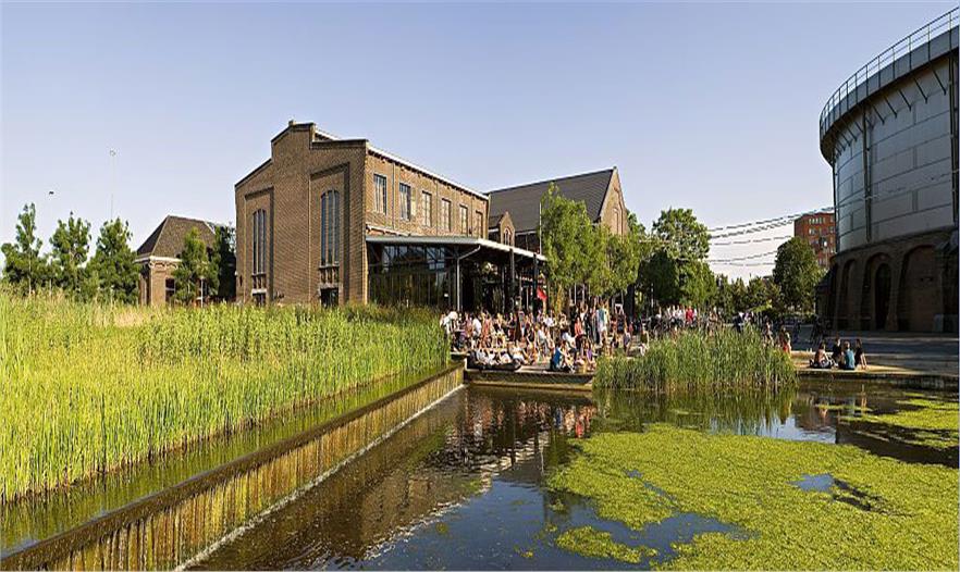 一些最具摧毀性的污染都是在工業(yè)革命的背景中產(chǎn)生的。在第二次世界大戰(zhàn)期間,污染更加嚴(yán)重了,隨后經(jīng)濟(jì)得到快速發(fā)展。生態(tài)活動(dòng)也隨著發(fā)生變化。在之前這個(gè)污染相當(dāng)嚴(yán)重的氣體工廠上新建一個(gè)公共花園的項(xiàng)目向我們展示出一個(gè)問題:我們只能以生態(tài)的角度解決問題。我們不能把受污染的土壤鏟除到別的地方,這樣會(huì)產(chǎn)生新的問題。所以半填半埋的方法很適用,讓新土壤來取代受污染的土壤,保留建筑周圍現(xiàn)有的地平面,并運(yùn)用受污染的土壤建造出一個(gè)新的起伏地形。公園的用途是雙重的,一個(gè)綠色公園和文化中心,可以舉辦室內(nèi)和戶外活動(dòng)。中央的散步走廊“The Axis”把市政廳和Cite des Artist連接了起來以及并把各種各樣的空間串聯(lián)了起來。鄰近的空間賦予公園各種各樣的氛圍。本土植物和選擇的其他植物種類的混合種植表現(xiàn)出了人類需求與自然秩序的動(dòng)態(tài)特征。在東端,公園的氛圍反映出更加正式的傳統(tǒng)花園類型。中央?yún)^(qū)域反映出戰(zhàn)后的景觀態(tài)度,作為運(yùn)動(dòng)、休閑和娛樂場所。西北O(jiān)verbracker堤圍澤地反映出最近的過去是需求純粹的天然/生態(tài)方法的代表性時(shí)期。西端反映出現(xiàn)代思考,那就是環(huán)境和諧發(fā)展必須在人類的參與下才能達(dá)到。