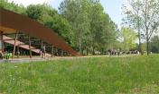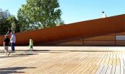 Urbicus事務(wù)所:“planches de Madine”是個(gè)獨(dú)特的建筑、城市和景觀項(xiàng)目,能與區(qū)域完全的融合,和諧發(fā)展。從建筑和廣場(chǎng)到散步走廊,這些木板是Madine改造的標(biāo)志物。木板的形狀突出了區(qū)域的地形,它的起伏映襯著建筑,建造出自己的特色,讓散步者穿梭于建筑當(dāng)中,時(shí)而高于建筑,時(shí)而低于建筑。這個(gè)木制走廊把一絲現(xiàn)代氣息帶入到該區(qū)域的景色當(dāng)中,遵循了河流本身全球性的設(shè)計(jì)方向。