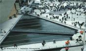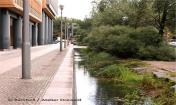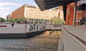 If necessary, technical filters can also be used, which will remove any floating algae in the summer months. In Marlene-Dietrich-Platz water flows in intricate patterns to the lowest point in the piazza. The water glides of flowsteps from the main expanse of water, and here rhythmic wave structures are formed. A detail that is accurate to a millimetre, worked out in 1:1 models. Then, immediately adjacent to the piazza, the water drifts from two sides over linear wave cascades, creating a clear link with the architecture. Finally water also emerges from a source in the northern area of water, then flows down a narrow channel. Given the extremely complex criteria that had to be met, DaimlerChrysler representative Karlheinz Bohn rightly pointed out after the opening that ‘as well as the fascination that this idea exercised over all of us, it soon became clear that an artificial expanse of water creates a number of problems if energy-intensive technology and chemical additives are not used.’ The results are convincing, as the quality of the water is good, the buffer capacity is adequate and the use of fresh water in the buildings has been reduced. In design terms, the ‘Urban Water Feature’ has given Potsdamer Platz a unique open space.