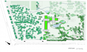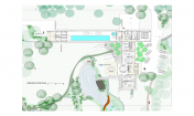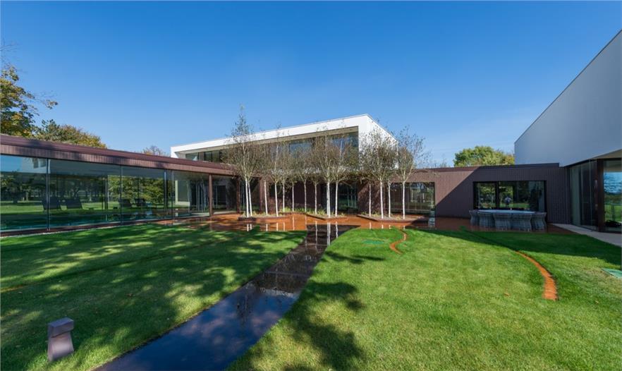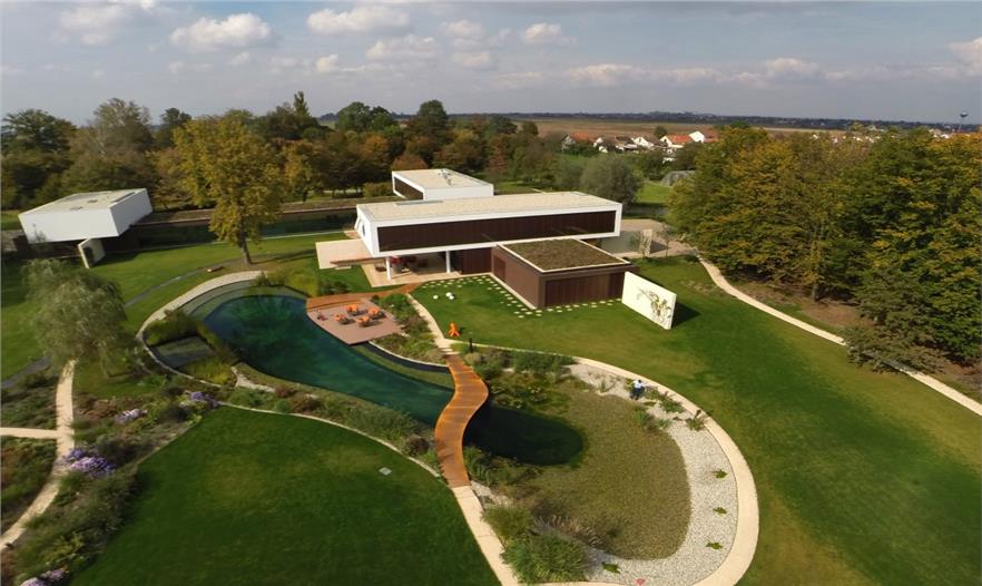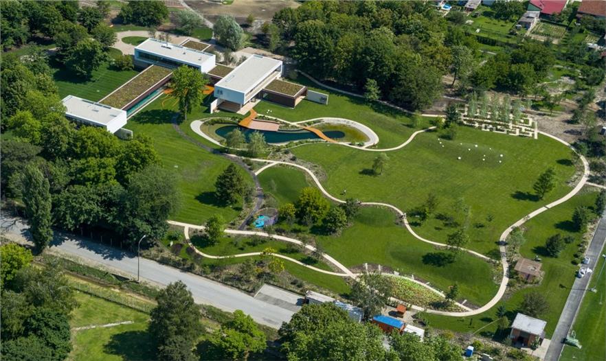Villa π位于奧西耶克附近?epin村莊的南部邊緣一塊將近4公頃的空地上。在這塊空地內(nèi),這座別墅被建造在天然林區(qū)和新景觀的拐角處。在別墅的南邊是一個(gè)新湖,水質(zhì)由生物凈化器保持。這塊區(qū)域有2個(gè)門,一個(gè)是為房主設(shè)計(jì),防止日參觀者、快遞員和服務(wù)員打擾,另一個(gè)是為水池的外部用戶和其他多日游的游客使用。