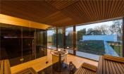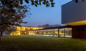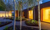 別墅大型的玻璃窗簾讓別墅與公園景觀結(jié)合起來,有了空間方位和透明度,游客可以與自然直接接觸。景觀設(shè)計(jì)通過季節(jié)變化提供了各種各樣的視覺吸引力和感官波動(dòng)。室外和室內(nèi)的設(shè)計(jì)所用的材料都是傳統(tǒng)的、天然的、暖色的棕色調(diào),讓房主和其他游客有溫暖的感覺并與自然產(chǎn)生了聯(lián)系。