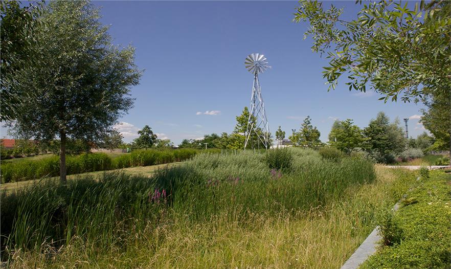 可持續(xù)水管理:使用灌溉管理原則(排放的最小化,除特殊的降水外,雨水收集和水源的回收利用;第一階段中建造水儲罐,用于灌溉);