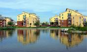 隨著車慢慢駛入,同行人群中有人開始發(fā)出陣陣贊嘆。社區(qū)內大片綠地和各式建筑的搭配,通體給人神清氣爽之感。尤其當車行上大橋,一座夢幻般的畫卷在我們面前暮然展現:碧波蕩漾的潮白河畔,7000畝林地含秀吐翠。水木清華之間,樓影幢幢。雖然已近初冬,水面在略顯料峭的風吹下,仍不失勃勃生機。