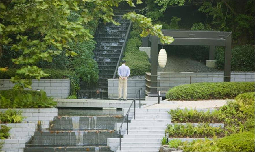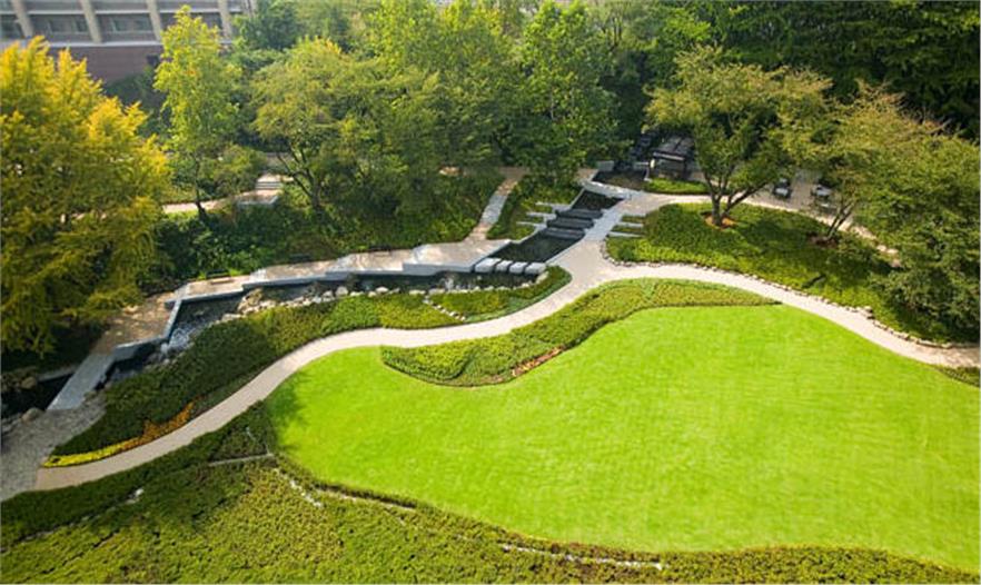 橫濱太陽(yáng)城是一個(gè)新建的退休人員持續(xù)社區(qū)照顧中心,由日本高級(jí)護(hù)理業(yè)的領(lǐng)頭羊日本健康理療公司經(jīng)營(yíng)管理。該項(xiàng)目為兩棟由一個(gè)亭子樣的社區(qū)建筑相連接的“村屋”式建筑。每棟都有240套帶獨(dú)立社區(qū)設(shè)施及廚房設(shè)備的房間。西邊的一棟還配備了120張帶有特殊護(hù)理儀器的床位,在整提建筑的北邊有一個(gè)單獨(dú)的院子通向這里。該社區(qū)療養(yǎng)園擁有天然化的景觀設(shè)計(jì),在東邊那棟村屋旁邊有一組造型美觀的草坪,一直通向一個(gè)圓形的小噴泉那里。從這里流出來(lái)的水沿著有樹木“護(hù)駕”的水槽勾勒出了該空間西邊的邊緣線。