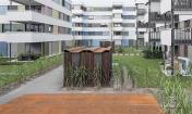 瑞士Schwerzenbach住宅社區(qū)的戶外空間的理念是從附近的格里芬湖和其濕地植被(草、柳樹和楊樹種類)那里獲得的靈感,而且該區(qū)域的土壤還具有特色。大量的草地和各種高度的宿根植物為這個空間構(gòu)造了建筑墻壁或是容積。像自行車和集裝箱這樣的小規(guī)模建筑潤色了植被結(jié)構(gòu)。加上它們之間的相互影響,構(gòu)成了一系列的植物圖案,持續(xù)反復(fù)地放置在開放空間上,創(chuàng)造出不同的空間區(qū)域。應(yīng)用在建筑元素上的考頓鋼材料參考了鄰近的鐵路進行設(shè)計的。
