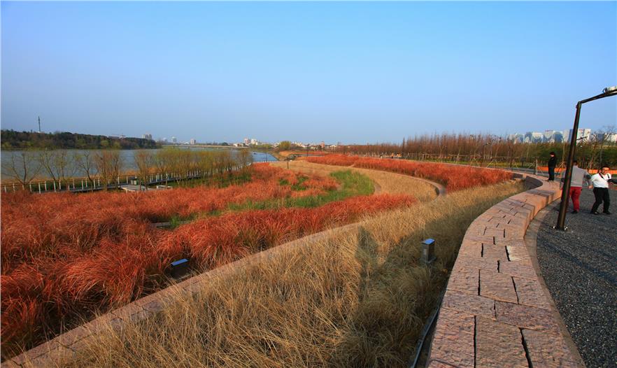 地處中國東部亞熱帶地區(qū),金華受強(qiáng)烈的海洋季風(fēng)氣候特征,有旱、雨季分明,雨季常受洪水之?dāng)_。同時(shí),為了爭取更多的便宜土地進(jìn)行城市建設(shè),大量河漫灘被圍建開發(fā)。兩江沿岸筑起了水泥高堤以御洪水,隔斷了人與江、城與江、植物與江水的聯(lián)系。同時(shí),江面縮窄,也使洪水的破壞力更加強(qiáng)大。為保護(hù)沙洲不被淹沒,當(dāng)?shù)厮块T已經(jīng)在燕尾洲的部分地段,分別修建了20年一遇和50年一遇的兩道防洪堤,破壞了沙洲公園的親水性。本設(shè)計(jì)不但將尚沒有被防洪高堤圍合的洲頭設(shè)計(jì)為可淹沒區(qū),同時(shí),將公園范圍內(nèi)的防洪硬岸砸掉,應(yīng)用填挖方就地平衡原理,將河岸改造為多級可淹沒的梯田種植帶,不但增加了河道的行洪斷面,減緩了水流的速度,緩解了對岸城市一側(cè)的防洪壓力,提高了公園鄰水界面的親水性。梯田上廣植適應(yīng)于季節(jié)性洪澇的鄉(xiāng)土植被,梯田擋墻為可進(jìn)入的步行道網(wǎng)絡(luò),使濱江水岸成為生機(jī)勃勃、兼具休憩和防洪功能的美麗景觀。每年的洪水帶梯田上的多年生高草帶來充足的沙土、水分和養(yǎng)分,使其能茂盛地繁衍和生長,且不需要任何施肥和灌溉。梯田河岸同時(shí)將來自陸地的面源污染和雨洪滯蓄和過濾,避免對河道造成污染。本項(xiàng)目盡管只有一段微不足道的生態(tài)防洪區(qū)域,但可作為婺江流域河道防洪設(shè)計(jì)的樣板,供借鑒和推廣。
