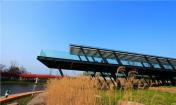 橫跨三江六岸的富有彈性和動感的步行橋,聯(lián)接城市的南北兩大組團(tuán),以及城市與江洲公園。步行橋的設(shè)計(jì)以金華當(dāng)?shù)孛袼孜幕械?ldquo;板凳龍“作為靈感來源。 這是金華當(dāng)?shù)靥赜械拇汗?jié)龍舞,每家每戶搬出自己的板凳,聯(lián)接在一起形成一條長龍,敲鑼打鼓蜿蜒在田埂上,群村老少喜氣洋洋跟在其后。這“板凳龍”不僅僅是一種狂歡的舞蹈,更是社區(qū)和家族的紐帶,它靈活機(jī)動,編織起文化與社會的認(rèn)同。 彩橋因地勢盤旋扭轉(zhuǎn),富有彈性,結(jié)合緩坡設(shè)計(jì)巧妙化解豎向高差;其中聯(lián)接城南-城北的主要橋體在200年一遇的洪水范圍之上,以保證在特大洪水時(shí)都能同行,而其中與燕尾洲公園連接的部分,則可以在20年一遇的洪水中淹沒,以適應(yīng)洪水對沙洲濕地的短時(shí)淹沒。步行橋飄忽燕尾洲頭的植被之上,使游客能在城市之中近距離觸摸到真實(shí)的自然。色彩上用具有民俗特征和喜慶熾烈的紅黃交替,同時(shí)結(jié)合晚間燈光和照明功能,流暢絢麗、便捷輕盈。橋梁總長700多米,其中跨越義烏江、武義江段分別為210米和180米。其全線采用鋼箱結(jié)構(gòu),橋梁主線寬5米,匝道寬4米,橋面采用環(huán)保材料竹木鋪設(shè),發(fā)光欄桿則選用了新型的透光玻璃鋼材料。這座橋的建成大大縮短了城南、城北的步行交通距離,并將兩岸綠廊和多個(gè)公園串聯(lián)成為一體。步行橋已被正式命名為“八詠橋,”以紀(jì)念歷史上詠嘆金華四周景觀的八首詩歌。無論從其對水的適應(yīng)彈性,還是對來自各個(gè)方向的人流疏導(dǎo)及使用強(qiáng)度的適應(yīng)性,還是其作為連接城市與自然、歷史與未來的粘結(jié)性,“八詠橋”都可稱之為一座富有彈性的橋。而徜徉在飄舞的“八詠橋”上,金華城市及四周的連綿山巒,蜿蜒而來的河流與川流不息的人流, 詩意便油然而生。難怪當(dāng)?shù)厥忻穹Q其“最富有詩意的橋” 。