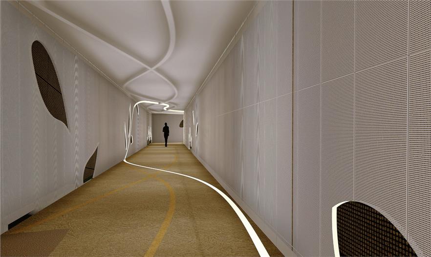 從外面,大面積透明玻璃的使用使得整個(gè)廊道結(jié)構(gòu)開(kāi)放而具有美感,視覺(jué)效果簡(jiǎn)潔而清澈。從內(nèi)部體驗(yàn),廊道結(jié)構(gòu)完美地實(shí)現(xiàn)與外圍空間的虛隔,觀覽過(guò)程私密而尊貴。