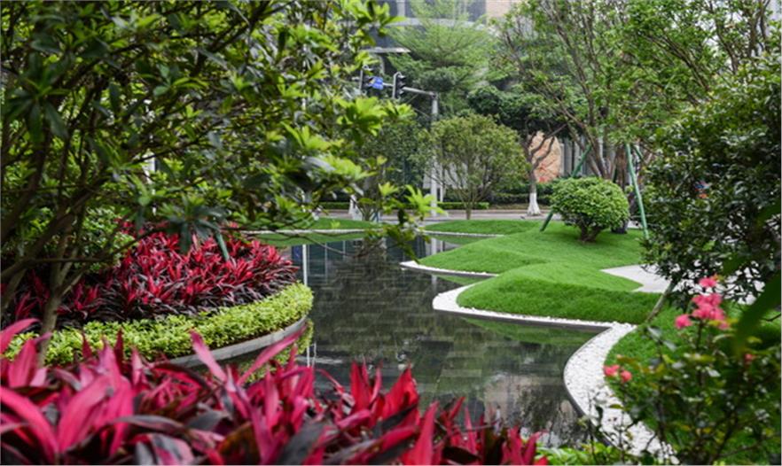 在項(xiàng)目設(shè)計(jì)上,生動(dòng)的景觀悄然延續(xù)著場(chǎng)地建筑弧形線條的平滑視感和靈動(dòng)造型特點(diǎn):在這里,無(wú)論是高聳入云的摩登大樓、還是優(yōu)雅簡(jiǎn)約的現(xiàn)代廊道、亦或是簇?fù)砥渲械纳坝^,均交織凝聚于行云流水的曲線流動(dòng)空間,完美彰顯現(xiàn)代都市流動(dòng)靈性下品質(zhì)與詩(shī)意的統(tǒng)一,不失為輕奢與浪漫的精彩演繹!