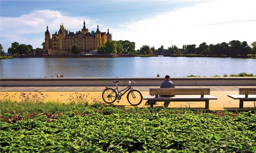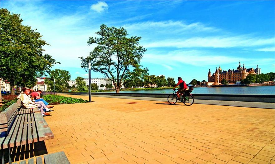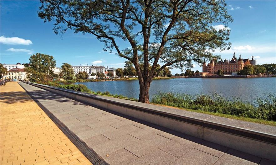Burgsee湖邊的人行道成為通向什未林市的重要入口通道。什未林市在2009年舉辦全國景觀展,在這種背景下便對人行道提出新設計理念的要求。21世紀花園的美麗及城堡的宏偉壯麗得到完好地保存,人行道在這座植物園城市下穿梭,湖畔周圍的墻架將整個植物園圍起來。站在這個水平上,整個景致在靜謐的水平面和對面的海濱中異常美麗。總之,人行道的維修費用低,能經受住時間的考驗,體現(xiàn)出長遠的設計和使用價值。