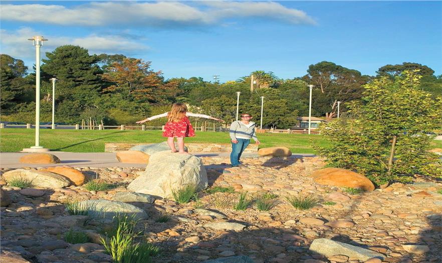 布賴爾克雷斯特公園面積約1.7公頃,毗鄰格雷斯蒙特醫(yī)療區(qū)圖書館和會議中心,為人們創(chuàng)造了一片靜謐空間,適于冥思和療養(yǎng)。在公園中心,修飾性的景觀引導人們進入小巧的“濕地”環(huán)境。雨水收集設施是公園的一大特色主題,所有的雨水通過人工“河床”流入公園中心。公園包含諸多“綠色”元素,例如雨水收集設施、本土植物種植區(qū)和先進的可持續(xù)性環(huán)保材料。布賴爾克雷斯特公園包括一些充滿“自然之樂”的景觀,例如蝴蝶園、藥草園、音樂園、迷宮、野餐桌、長凳、座椅式矮墻和丘狀草坪。此外,大型游樂區(qū)也不乏“自然之樂”,“公園寵物”惟妙惟肖,旱河床功能多樣,石頭攀巖墻的設計鼓勵人們勇于探索,樂于創(chuàng)新。
