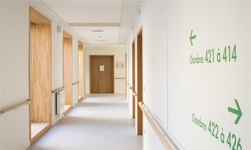 這棟位于巴黎14區(qū),占地3公頃的建筑師養(yǎng)老院+托兒所的建筑集合體可為98位老人提供養(yǎng)老服務(wù),為64個兒童提供托兒所服務(wù)。該項目推翻場地上原有的大部分建筑而重建,屬于整個改造項目的第一期,建筑中心有兩個內(nèi)院,第四層體量向后回縮,形成舒適寬大的通廊,這一層的深暖色與建筑周身銀色外觀形成鮮明對比,點活了整個造型。所有老人居住的房間都沿外墻布置,每間均有自然光和外景。內(nèi)部的走廊和公共空間因為內(nèi)庭院的存在而變得光明。