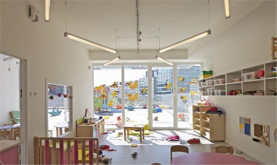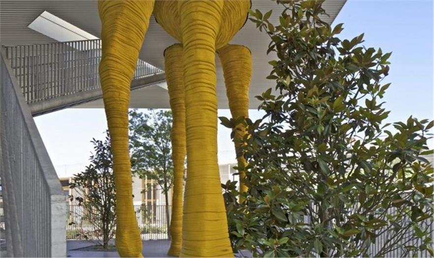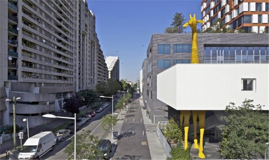 一個巨大的黃色長頸鹿用它的頭捅破了建筑的屋頂,看屋頂上還站著一只北極熊!這個兒童看護中心(Giraffe Childcare Centre)位于法國巴黎,由法國事務(wù)所Hondelatte Laporte Architects設(shè)計。