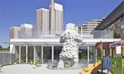 建筑師想將公共空間營造出兒童世界的感覺,于是用孩子們的想象力創(chuàng)造了一些看似荒謬卻充滿趣味和吸引眼球的元素。于是你看到了作為領(lǐng)導(dǎo)者的長頸鹿凝視遠(yuǎn)方,對身邊觸手可及的樹葉無動于衷,北極熊試圖從南面爬上屋頂,那些瓢蟲在花園里排著隊在曬太陽……