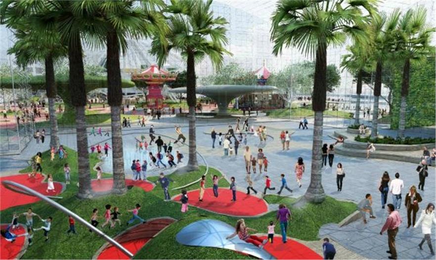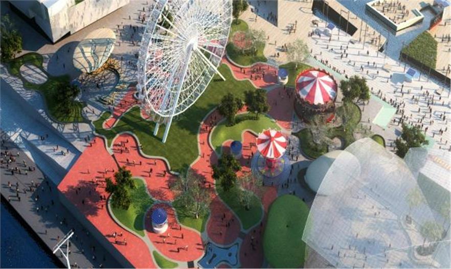一部寬敞的樓梯將人們引往碼頭公園。這里混合了騎行空間、劇院、室外空間以及其他更多的空間,形成了一個重點關(guān)注互動游戲的區(qū)域。水晶花園中一種新創(chuàng)的地形創(chuàng)造了一個室外空間樂園,可以舉辦“娛樂藝術(shù)展覽”。
