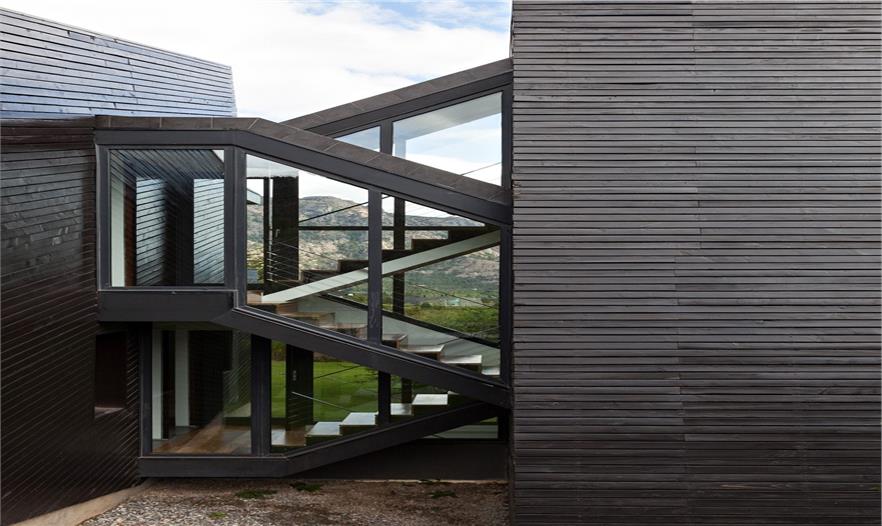 這座房屋由幾個(gè)建筑結(jié)構(gòu)組成,彼此之間連接,中間的連接部分與周圍景觀相接觸。所以,人們進(jìn)入這些空間都意味著人們不斷穿梭于房屋與自然景觀之中。