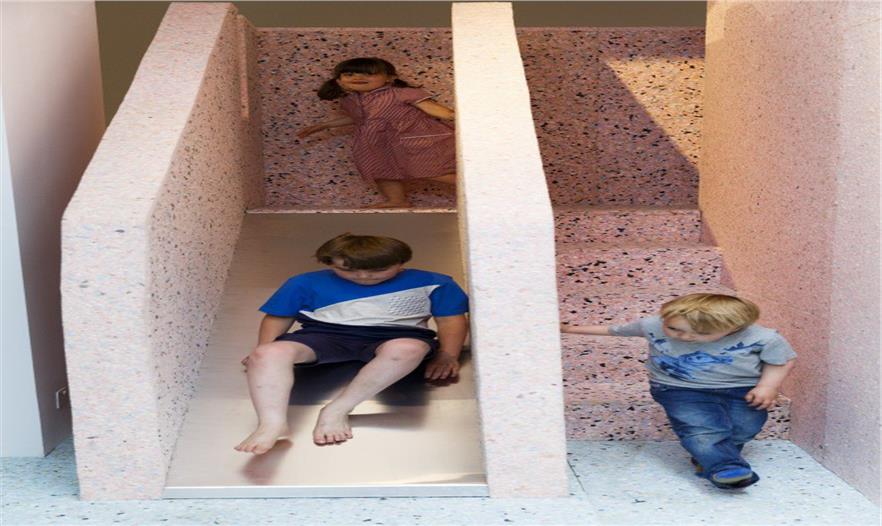 最近這個(gè)關(guān)于“戰(zhàn)后游樂場(chǎng)設(shè)計(jì)”的探索活動(dòng)已經(jīng)在RIBA的建筑藝術(shù)館對(duì)外開放了,整體的布局及組裝由藝術(shù)家Simon Terrill設(shè)計(jì)并完成。該展覽中借鑒了無數(shù)英國(guó)著名建筑的設(shè)計(jì)風(fēng)格,比如倫敦皮米利克的丘吉爾花園、布魯內(nèi)爾宅邸、帕丁頓及博普拉區(qū)的棕色地帶等等富有個(gè)性的建筑風(fēng)格。而這里也曾是一個(gè)供兒童玩樂的抽象景觀地標(biāo),但一度因?yàn)榘踩嬖陔[患而停止對(duì)兒童開放。不過現(xiàn)在,野獸派藝術(shù)家對(duì)這里進(jìn)行了設(shè)計(jì)上的探索,而這,被稱為“野獸派的方式”。Terrill對(duì)他的作品描述道,“過去的哪種游樂場(chǎng)喚醒了人們對(duì)混凝土迷宮及風(fēng)呼嘯而過的人行道的渴望。就像用混凝土呈現(xiàn)一組布萊希特戲劇的舞臺(tái)一樣,人們就仿佛在于過去的時(shí)間對(duì)話、在這高度管制的公共空間中自由的玩耍。這種形式的娛樂就仿佛是一種超越野獸派的風(fēng)尚。這里的游樂設(shè)施有著很高的可玩性,而且都設(shè)計(jì)成了邊緣銳利的錘型,并且涂上了漂亮的顏色。而這些“超現(xiàn)實(shí)的邊緣”在這個(gè)游樂場(chǎng)中的設(shè)計(jì)充分的體現(xiàn)了野獸派的審美情趣。