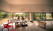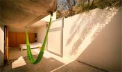 這座房屋是由粗石建造的,“匍匐”在樹(shù)下,與植被覆蓋的石坡相一致,這樣設(shè)計(jì)師在自然空間里建造了一個(gè)純碎的空間。