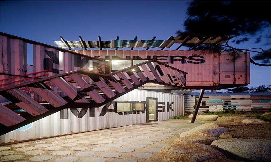 為了創(chuàng)造舒適感,這個新建筑還設(shè)有遮陽功能,避免陽光的暴曬,包括階梯、集裝箱突出部分、木質(zhì)平臺、下腳料欄桿和下腳料遮陽篷。開口的朝向也進行了精心設(shè)計,面向菲利普港灣,保證夏季涼風的進入,保持涼爽。