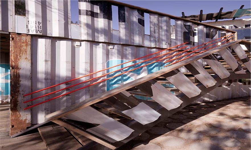 作為反饋設(shè)計程序,集裝箱的下腳料被回收利用到最后的建造當中,用于功能性的欄桿、遮陽和裝飾。木質(zhì)平臺的下腳料成為底襯。