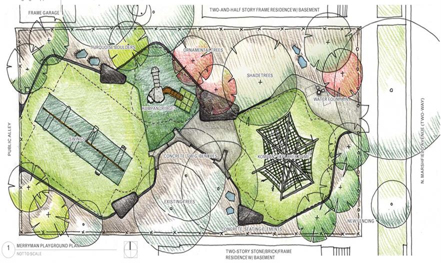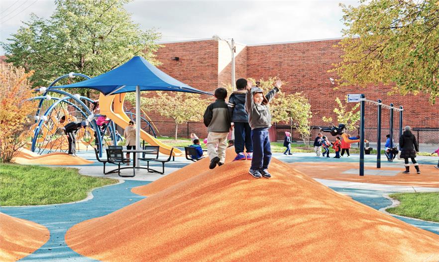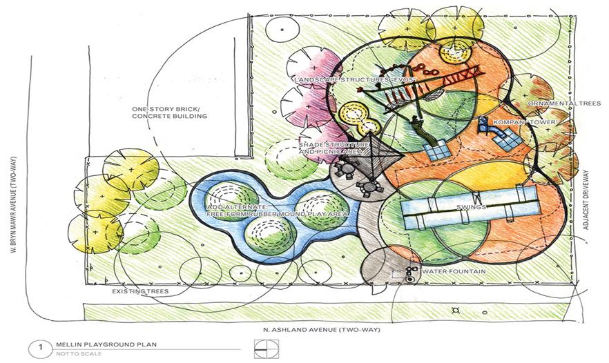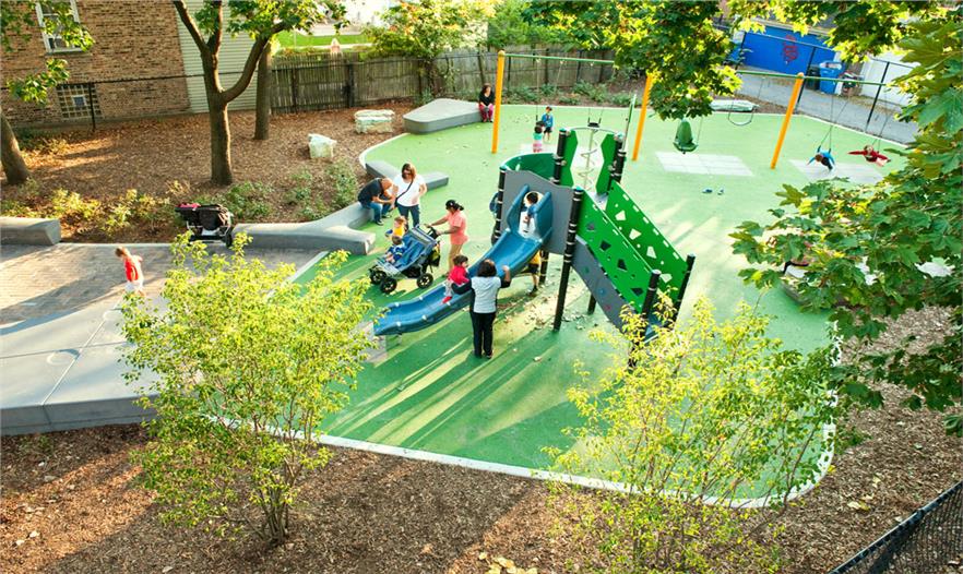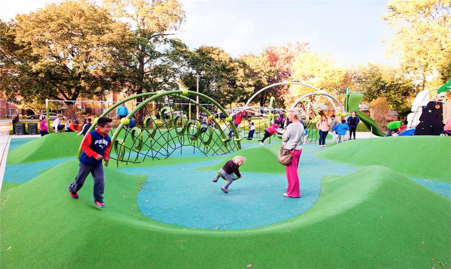 2012年,芝加哥公園管理委員會(huì)選擇site design group事務(wù)所設(shè)計(jì)芝加哥北邊和西北邊3個(gè)現(xiàn)存游樂場的改造方案。這些公園彼此只相隔幾公里;Mellin公園、Merryman公園和梅里馬克公園作為一個(gè)設(shè)計(jì)和建筑項(xiàng)目進(jìn)行的投標(biāo)。每個(gè)公園呈現(xiàn)出自己的特點(diǎn)、挑戰(zhàn)和成果,但首要目標(biāo)都是在小型的城市空地里建造獨(dú)特、有趣和創(chuàng)意性的游樂空間。這些完工的公園是低成本游樂場改造項(xiàng)目的典型事例,都是特色顯著、活躍的且有挑戰(zhàn)性的游樂空間,證明了即使是最小的游樂場也能擺脫傳統(tǒng)的設(shè)計(jì)和臺(tái)地結(jié)構(gòu),建造出自己的特色。