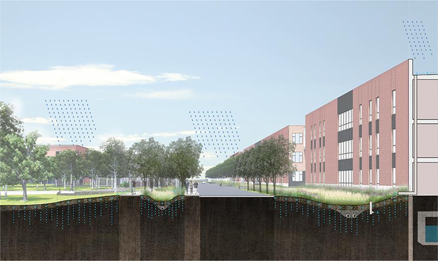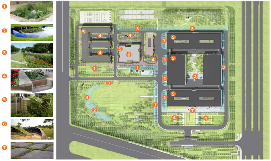 低影響開發(fā)是我們設(shè)計(jì)的一個主要著力點(diǎn),引導(dǎo)自然做工、順應(yīng)場地水文條件,是保障設(shè)計(jì)持久性、安全性的必要手段。因此,我們在園區(qū)功能布局的基礎(chǔ)上,進(jìn)行了低影響開發(fā)規(guī)劃。