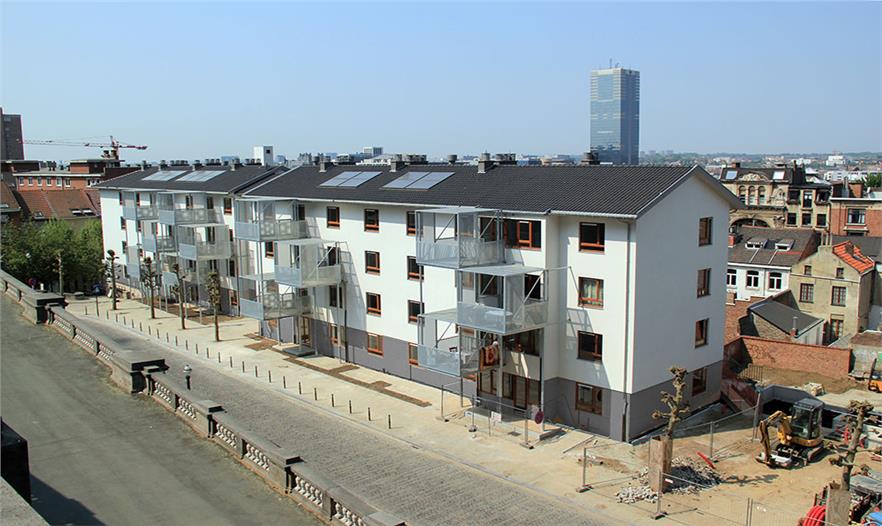 增加新的木頭窗戶框架來保持現(xiàn)存的輪廓給建筑物增加了可見的柔和性。使用一邊倒來裝備框架來保護(hù)它們不受雨水的干擾并且強(qiáng)調(diào)飽滿和中空表面深度的對(duì)比。使用光滑的、有顏色的圖層可以在保持成本最小的條件下有效的保持墻面的清潔,這與舊的傳統(tǒng)即在比利時(shí)為了保持那些容易迅速沙化的堅(jiān)硬表面而被拋棄相符。