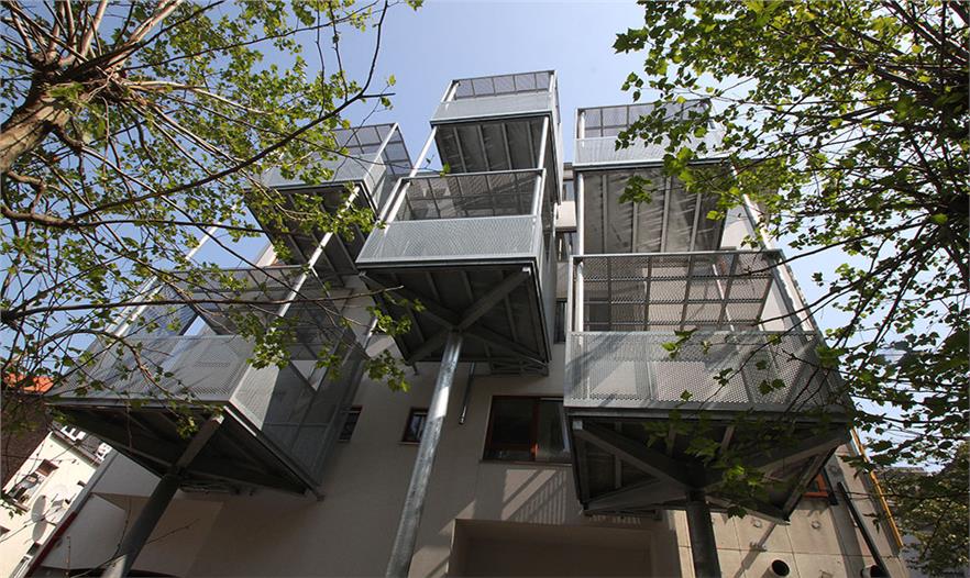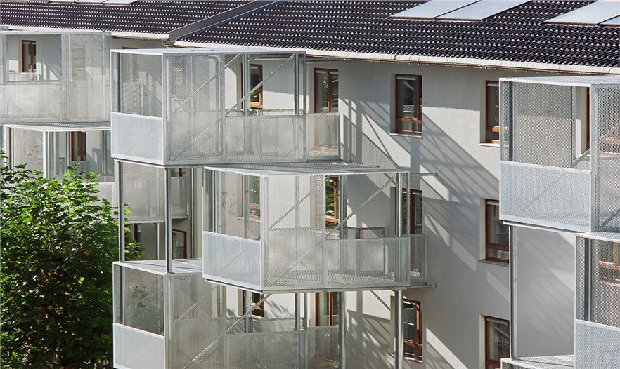 另外的沿著居住區(qū)域的陽(yáng)臺(tái)被復(fù)合在建筑物中,新的陽(yáng)臺(tái)作為建筑物的延伸被建設(shè)在獨(dú)立的結(jié)構(gòu)中。如果一些小的沒有陽(yáng)臺(tái)的公寓聚集成了一個(gè)大的公寓,需要建造一個(gè)新的陽(yáng)臺(tái)。