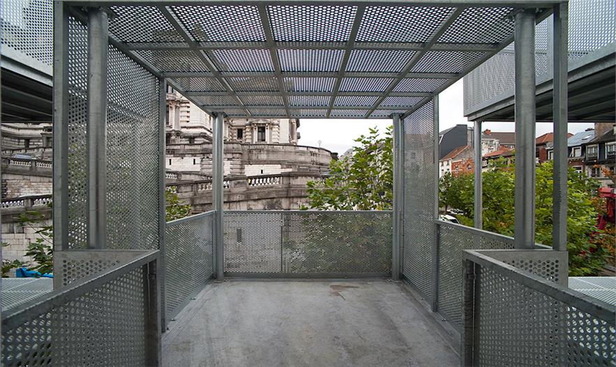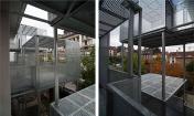 新的室外區(qū)域,金屬框架和穿孔片金屬還可以使用穩(wěn)定的木頭進(jìn)行覆蓋(為了固定)來優(yōu)化生活舒適度。四根金屬柱子可以用來攀登平臺(tái),例如常春藤,來支撐陽(yáng)臺(tái)。