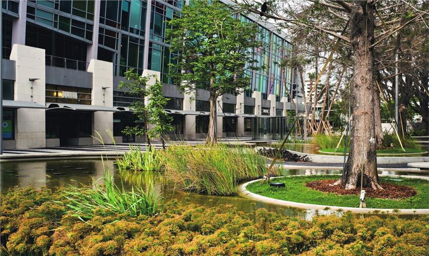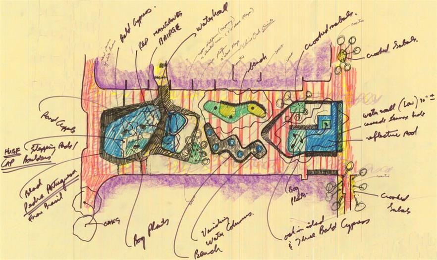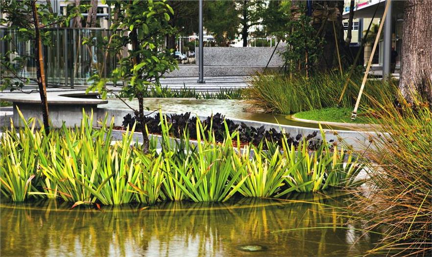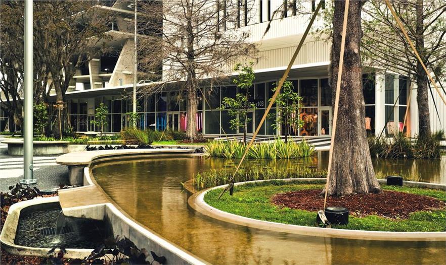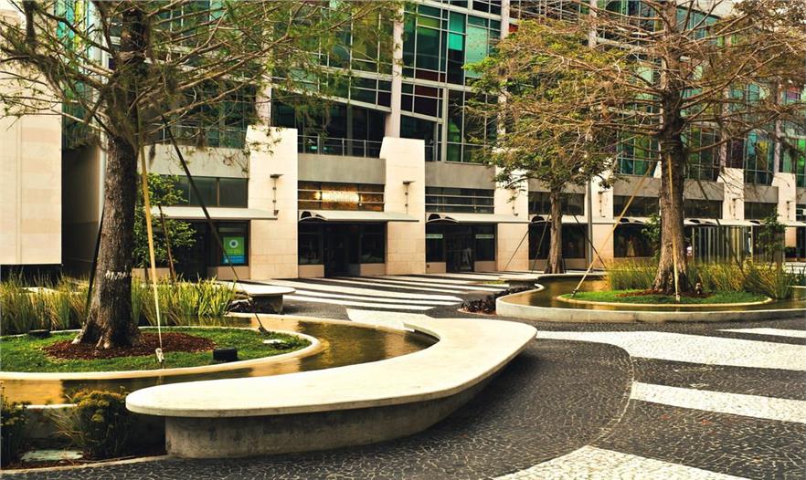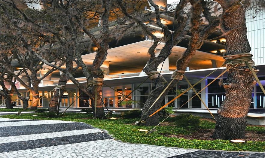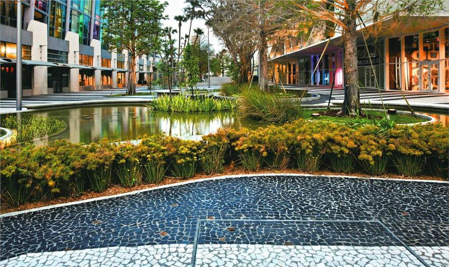 林肯路1111號渴望大膽、淳樸、永恒。它維持了莫里斯·拉皮德斯營造一個購物、餐飲和公共集會的室外“熱帶”環(huán)境的最初愿景。這個項目是Herzog & de Meuron和Raymond Jungles, Inc.合作完成的。廣場由水園、植栽和不同寬度的“葡萄牙石”鋪設的條紋構成,作為擴展和定義人流量和潛在或原有零售、餐飲和娛樂場所的可見度。有一個輕微凸起的多功能站臺的中央開放空間用來舉行公共集會、演講和活動。各種佛羅里達當?shù)貥淠?、棕櫚植物和草地再造了自然的同時提供了建筑和人之間的平穩(wěn)過渡。通過將自然引入一個成熟的城市環(huán)境,Raymond Jungles公司創(chuàng)造了一個“城市空地”,由邁阿密海灘規(guī)劃部門的會員鑄造而成。