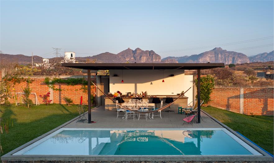 依據(jù)這個(gè)空地的尺度,PRODUCTORA事務(wù)所在中央位置用回收的圓頂建筑建造了一個(gè)花朵結(jié)構(gòu),而其他附加結(jié)構(gòu)建在空地周?chē)?。通過(guò)把空地建成一塊活躍的區(qū)域,用于各個(gè)活動(dòng)如睡覺(jué)、烹飪、游泳、日光浴、客房、燒烤等,整個(gè)組合輕松自然,布局更加開(kāi)放和活躍。