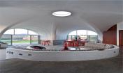 當(dāng)這個(gè)結(jié)構(gòu)被支撐起來(lái)后,為了建造更加寬闊的室內(nèi)空間,PRODUCTORA事務(wù)所在纖維結(jié)構(gòu)上增加了一個(gè)混凝土底座。粗糙的混凝土——與當(dāng)?shù)氐慕ㄖと艘黄鹜瓿傻?mdash;—與白色樹(shù)脂結(jié)構(gòu)明亮、平滑和精致的表面形成對(duì)比。