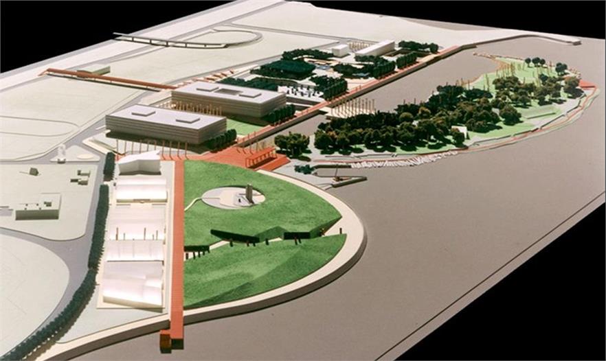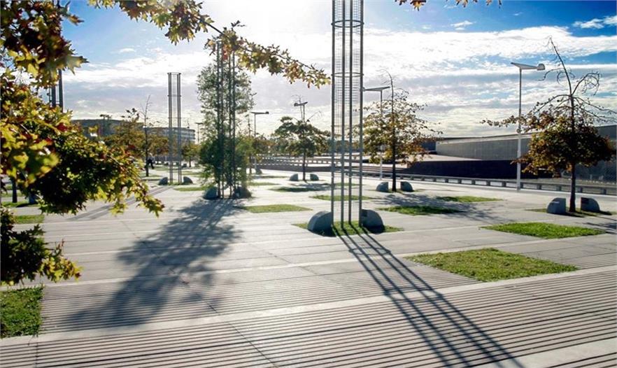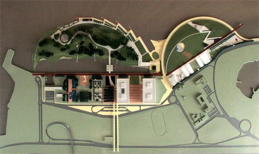 項目面積約40萬平方米,公園設(shè)計一個極富曲線美的蝴蝶,“蝴蝶”為兩個半月牙形區(qū)域,每個區(qū)域為一個公園,各具特色。公園一側(cè)為自然公園(處于建設(shè)初級階段),與大學(xué)校園相接,好似校園向河濱的自然延伸;一側(cè)連接北科斯塔內(nèi)拉大道成為紀念公園。