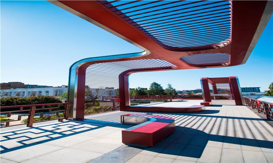 笛東設計團隊根據(jù)整體地塊性質及周邊區(qū)域功能,將景觀風格與不同地塊的功能定位相融合,并進行差異化設計,打造“琨御六景”。由于項目臨近兩條地鐵交匯站點,覆土與荷載均有限制,種植條件也相應受到約束。笛東設計團隊通過部分地形營造、采用輕型結構等手法,變弊為利,通過空間組織與豐富種植層次,對空間進行整合梳理,強調規(guī)劃、建筑與景觀的一體化,使景觀的場所營造感與建筑的使用功能完整融合。項目遵循“以人為本”的原則,強調人的參與性、感知性與空間歸屬感,創(chuàng)造宜“人”環(huán)境。