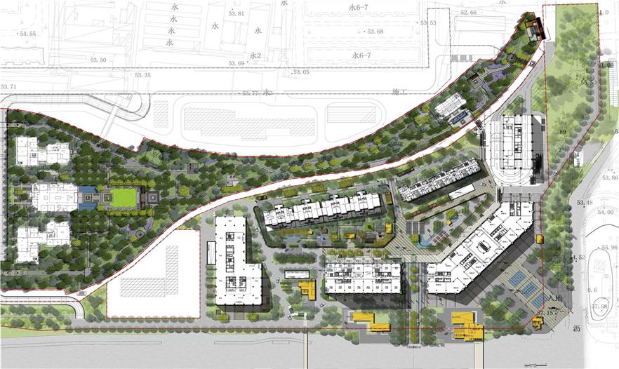 琨御府是北京第一處地鐵頂板項目,是含商業(yè)、辦公、住宅、公園為一體的商業(yè)綜合景觀設計作品。其分為上蓋區(qū)、咽喉區(qū)及落地區(qū)三大地塊。咽喉區(qū)地塊位于地鐵車庫頂板位置,垂直地面距離約9米,屬屋頂花園性質。但因下方有地鐵高壓電等因素,咽喉區(qū)比屋頂花園在防排水、荷載、防震等方面有著更嚴峻的要求。此地鐵頂蓋景觀設計的成功實踐將對地鐵頂板開發(fā)有著重大意義。