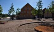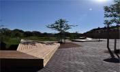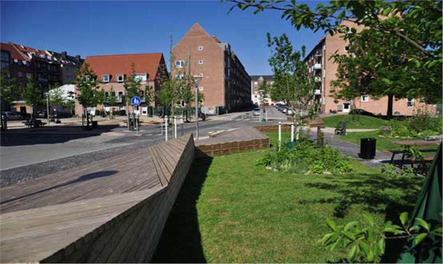 該城市花園有三大元素;位于花園南部的城市森林讓不同橡樹的樹冠構成了開放性的遮蓬,而該廣場本身也是四面開放的。這個廣場已經成為一個城市活動中心,設有綜合性的雨水管理系統(tǒng);樹干之間還有不同規(guī)模的圓盆,用來收集雨水,慢慢地滲透和蒸發(fā),同時映射出天空的景色,陽光灑射到地面上,景色柔和而美麗。